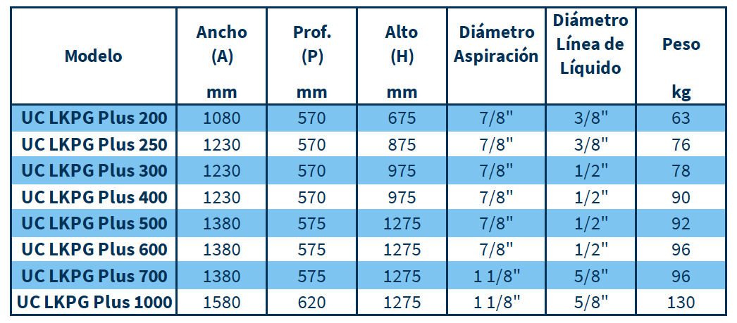 POTENCIA FRIGORÍFICA [W] LÍNEA UC LKPG